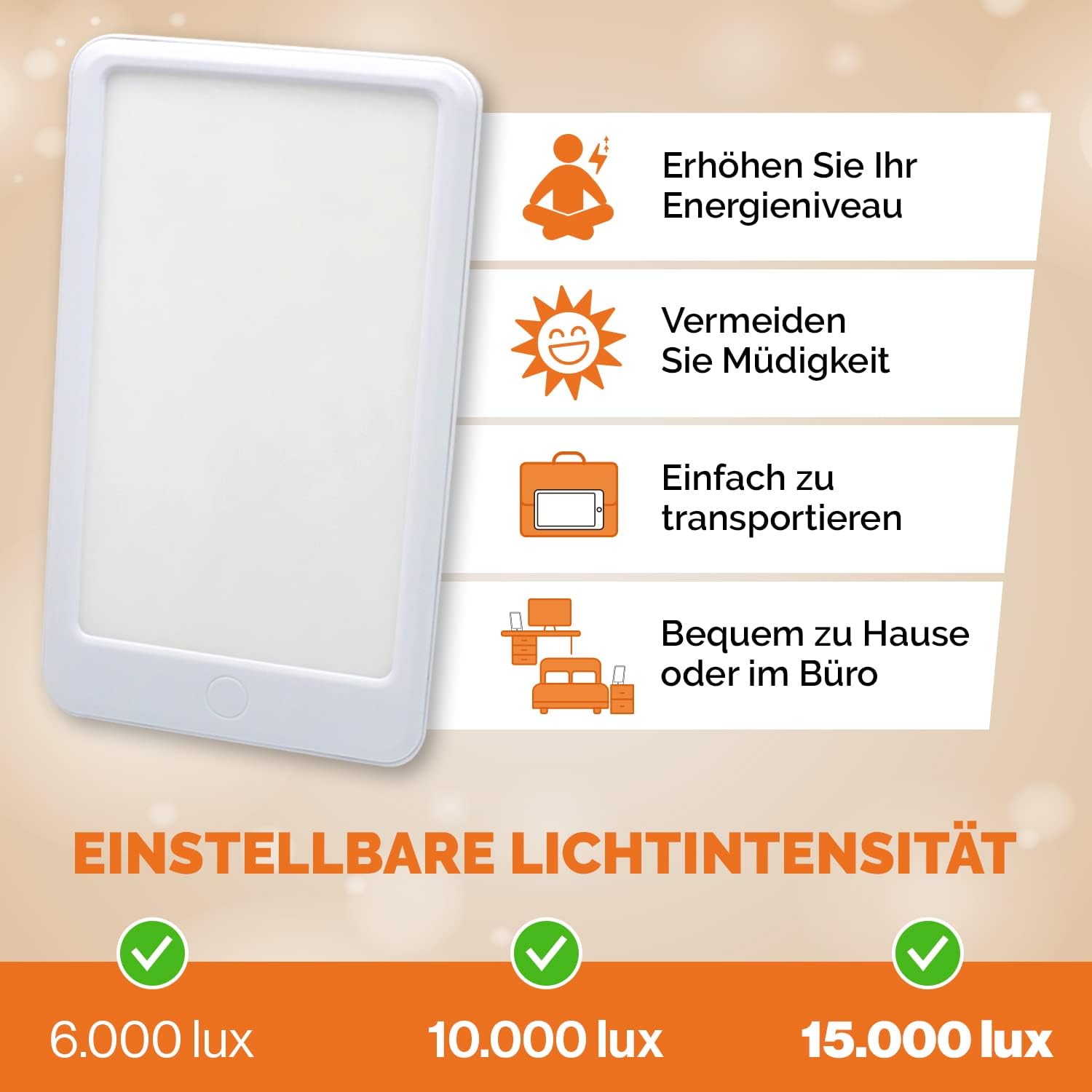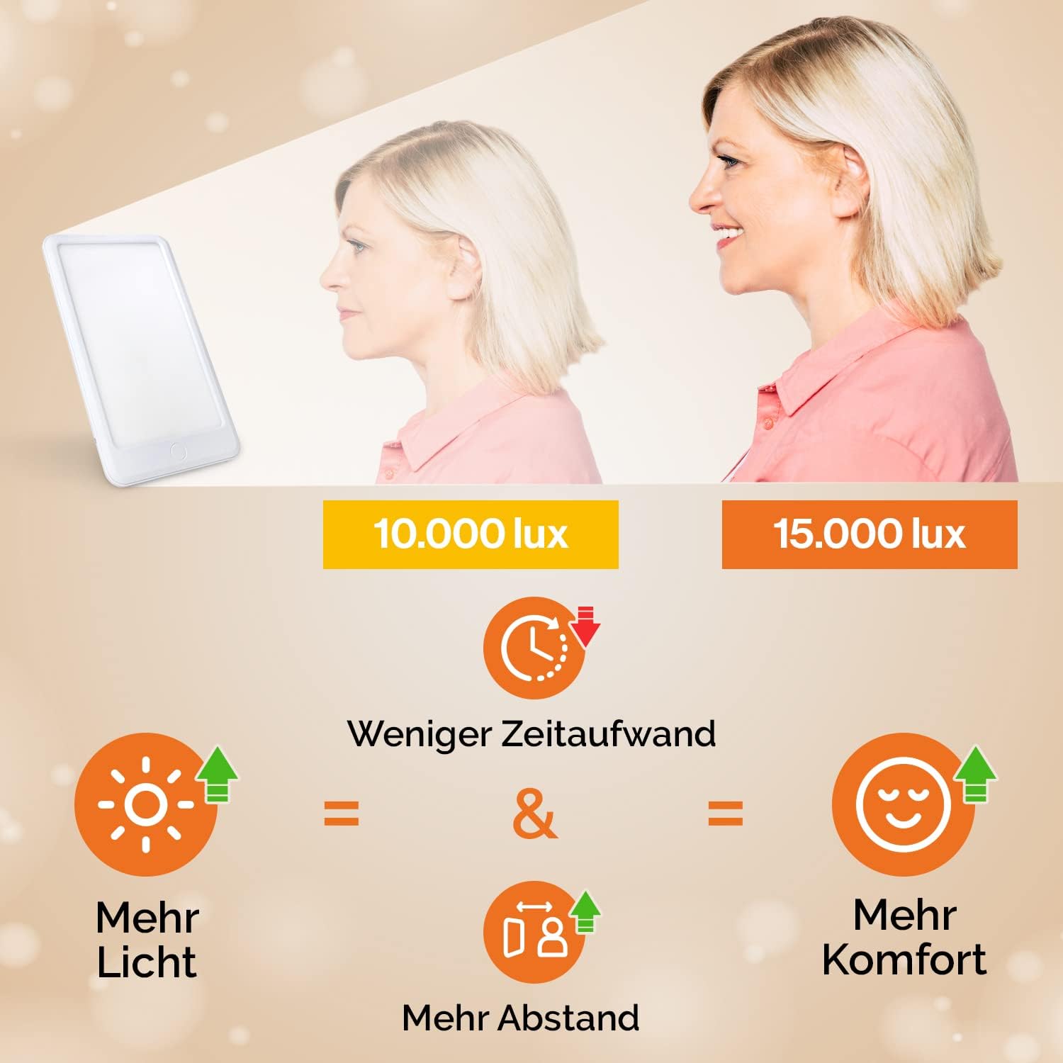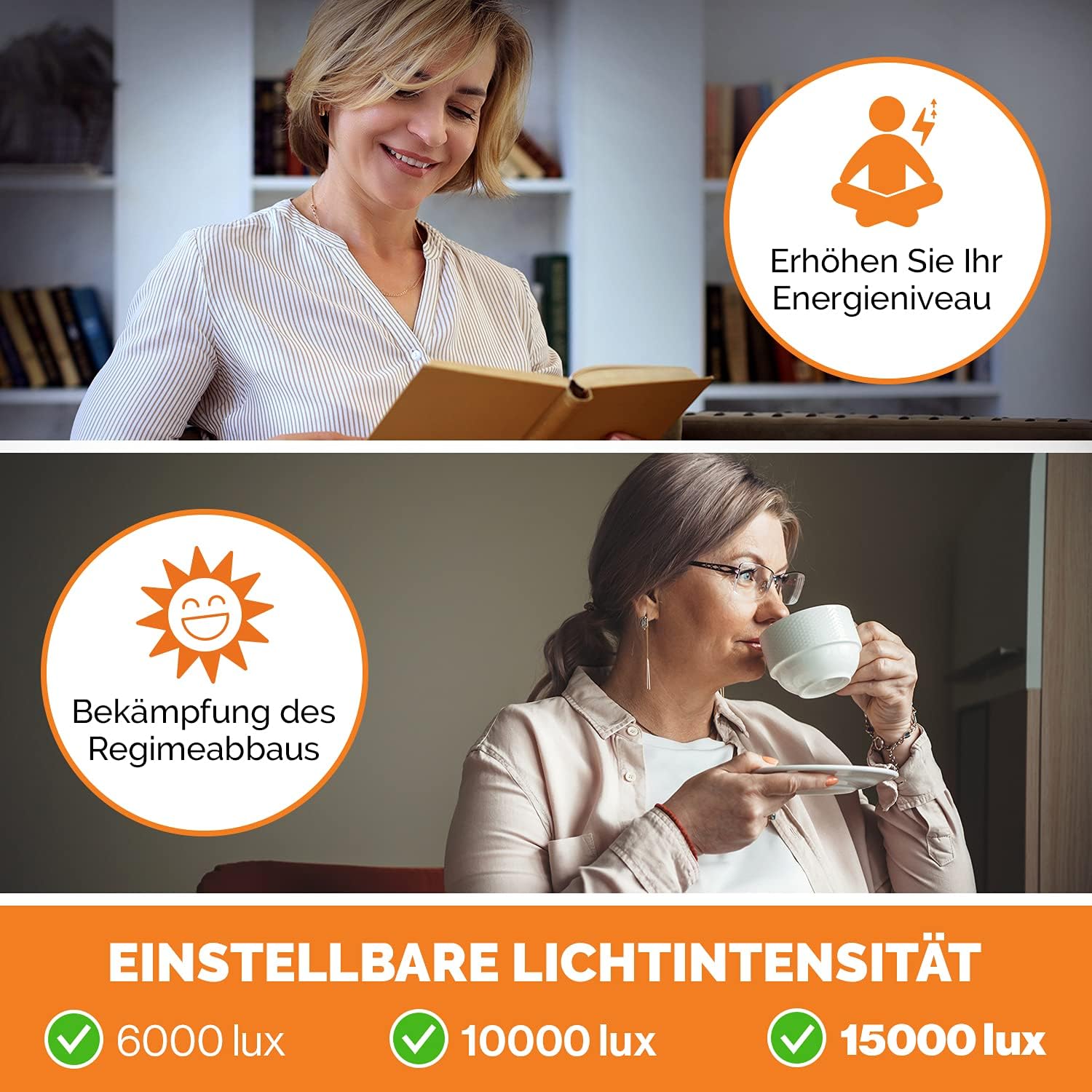 Dvojna nastavitev svetlosti: 6.000 ali 10.000 lux za prilagodljivo uporabo.