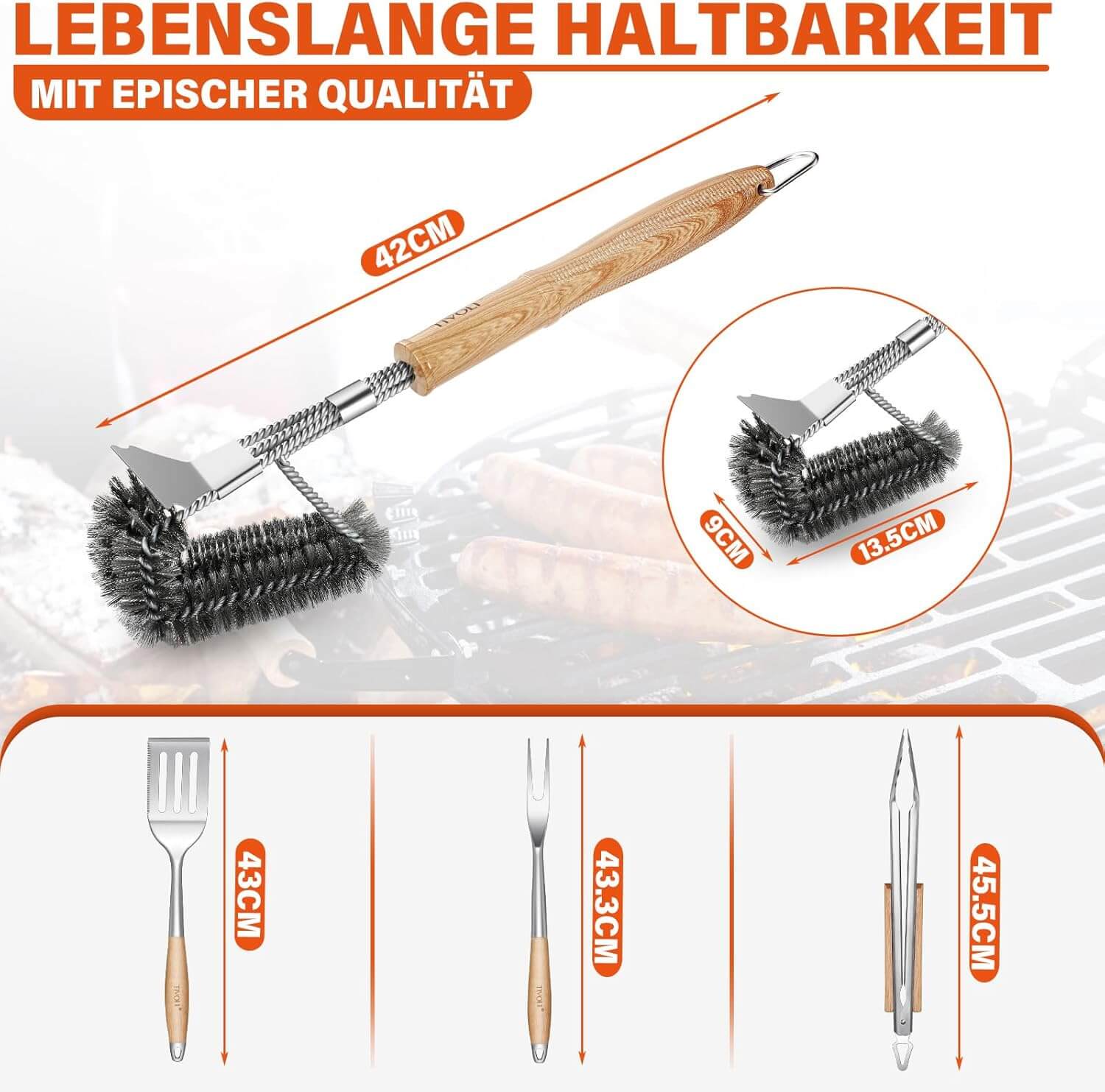 Vsestranski komplet: 4 osnovni pripomočki za obračanje, mazanje omak ali premikanje hrane na žaru – popolna oprema za vsako vrsto pečenja.