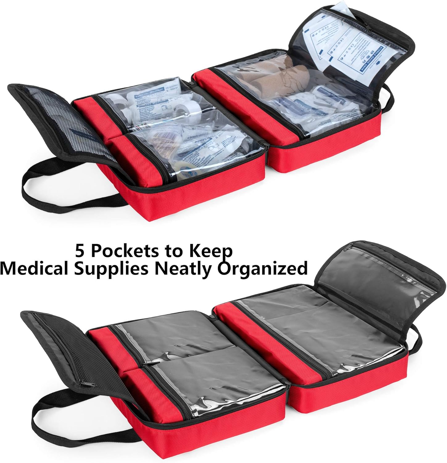 Več notranjih žepov: 4 prozorni žepi in 1 mrežasti žep omogočajo pregledno organizacijo medicinskih potrebščin.