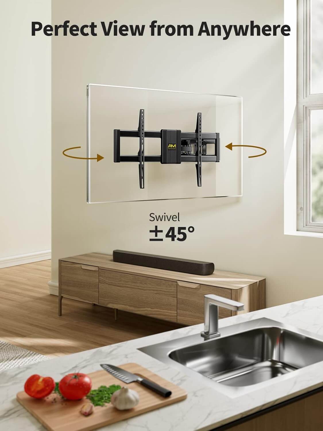 ✔ Popolna prilagodljivost – Nagib +5°/-15° zmanjša bleščanje, vrtljivost do ±45° omogoča prilagajanje kota gledanja, ±3° rotacija pa zagotavlja popolno poravnavo zaslona.