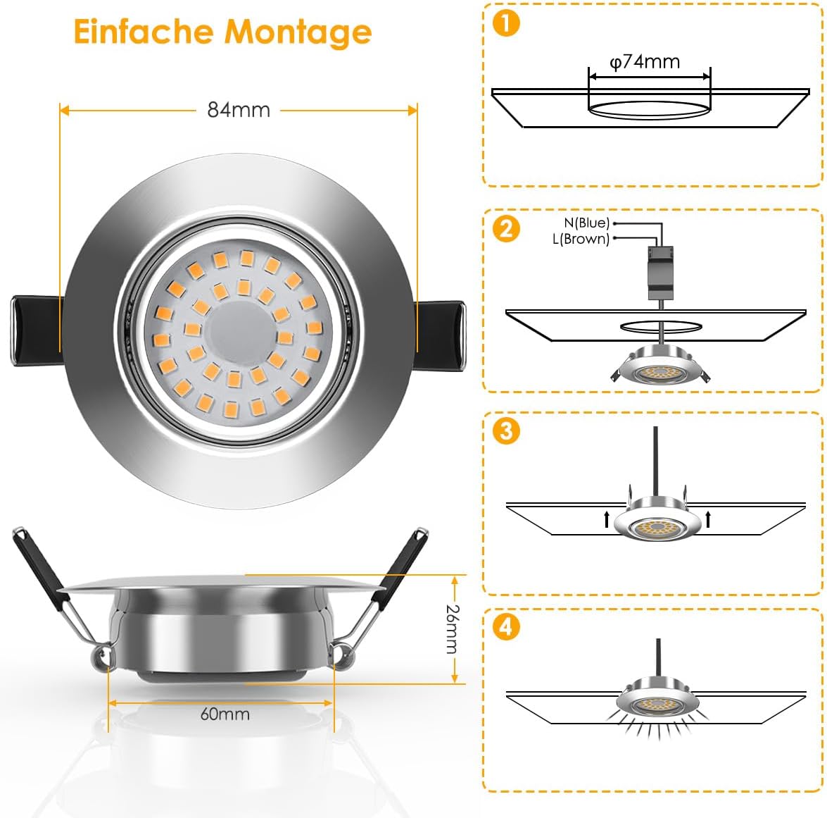 Moč: 6W (ekvivalent 50W halogenki)