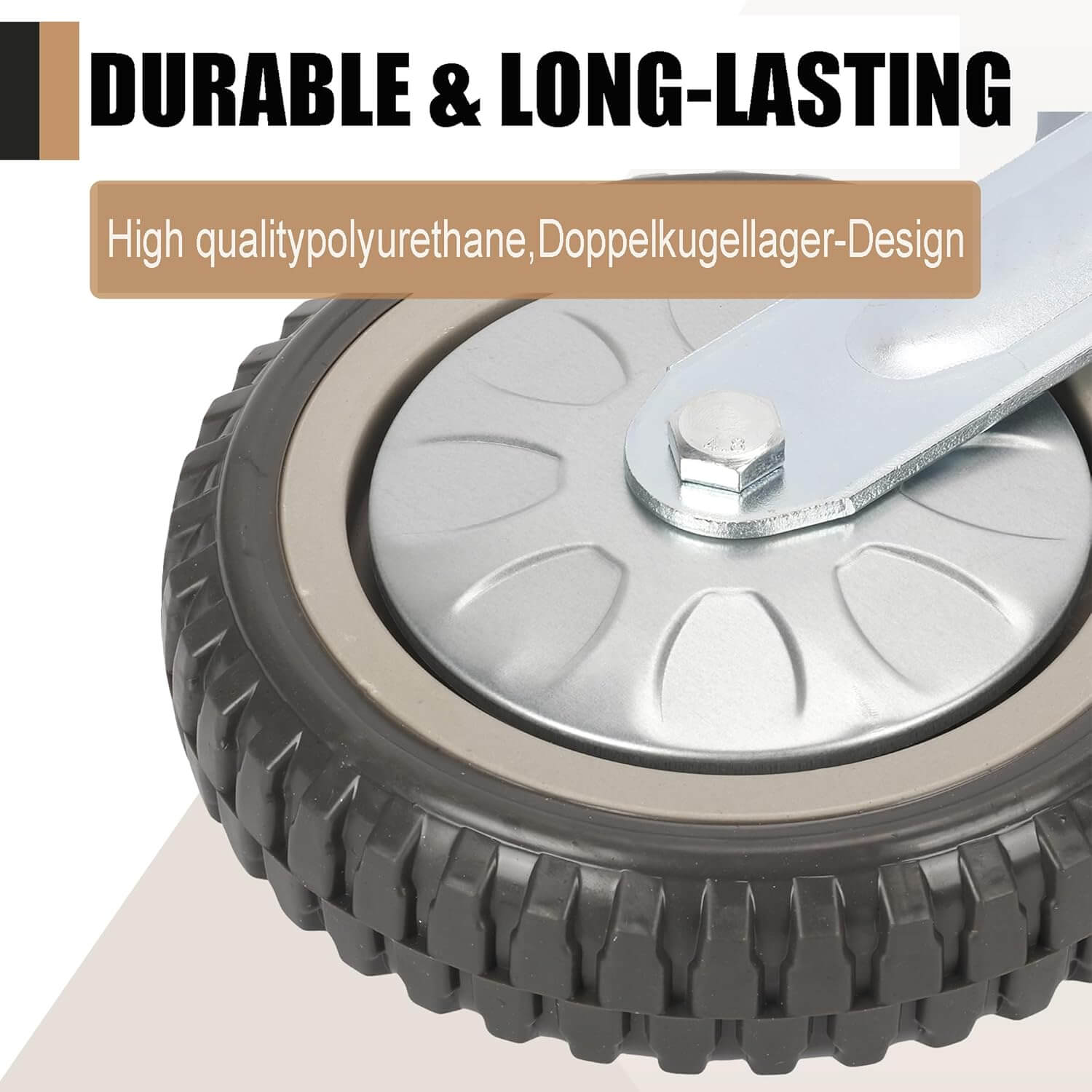Visokokakovosten komplet industrijskih koles je idealen za premikanje težjih bremen v delavnicah, skladiščih, garažah ali domači uporabi. Masivna gumirana kolesa zagotavljajo tiho vožnjo, robustno ohišje pa visoko nosilnost in dolgo življenjsko dobo.