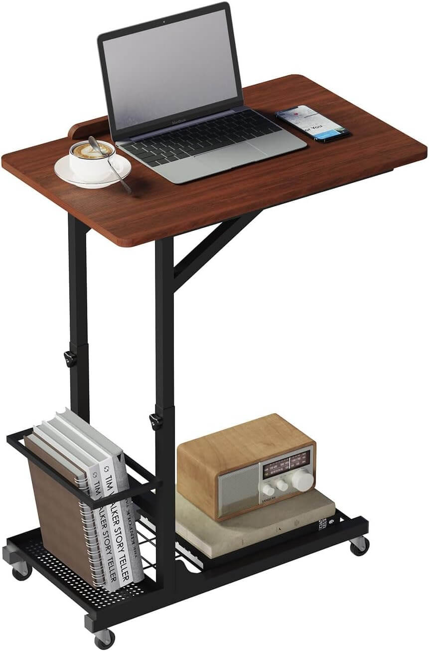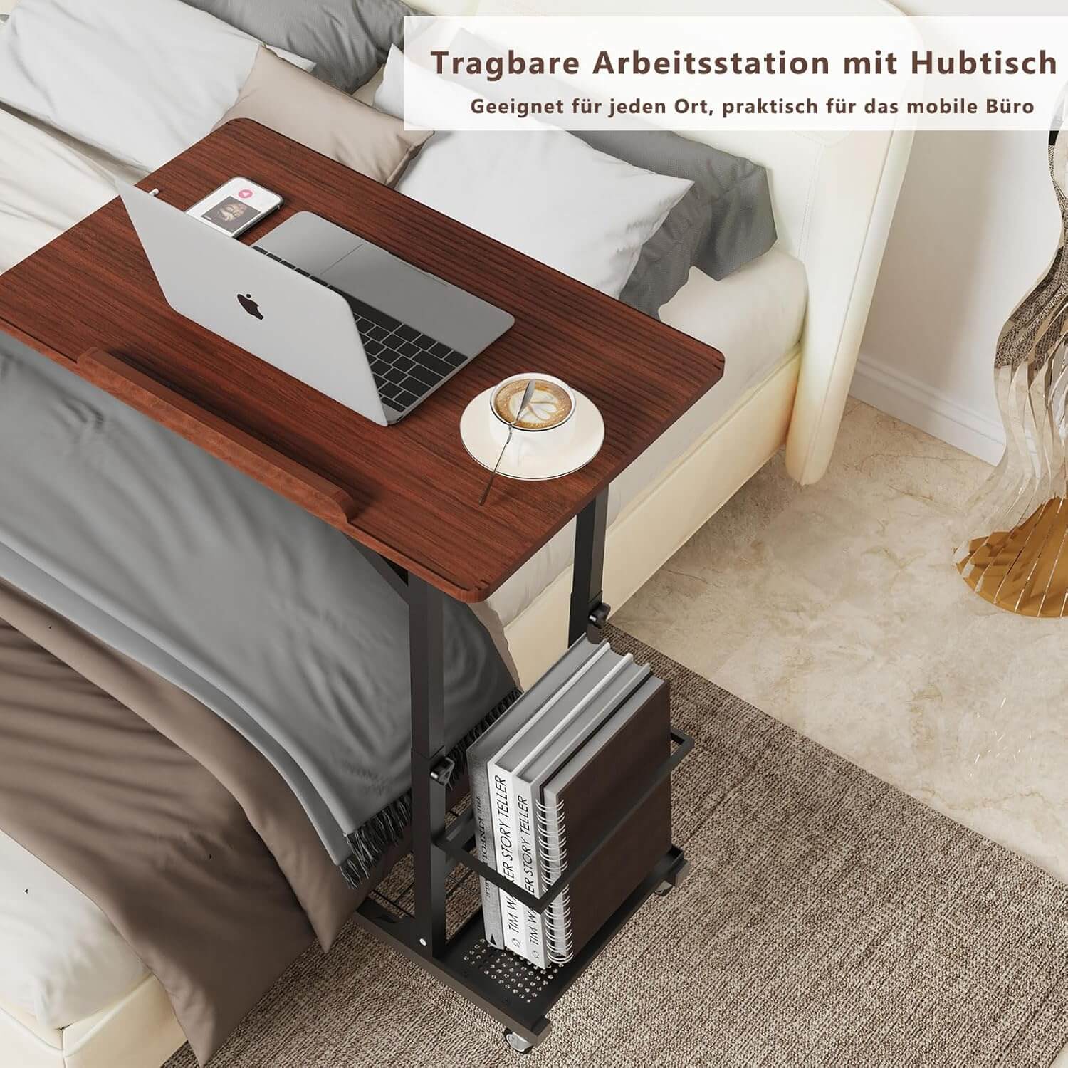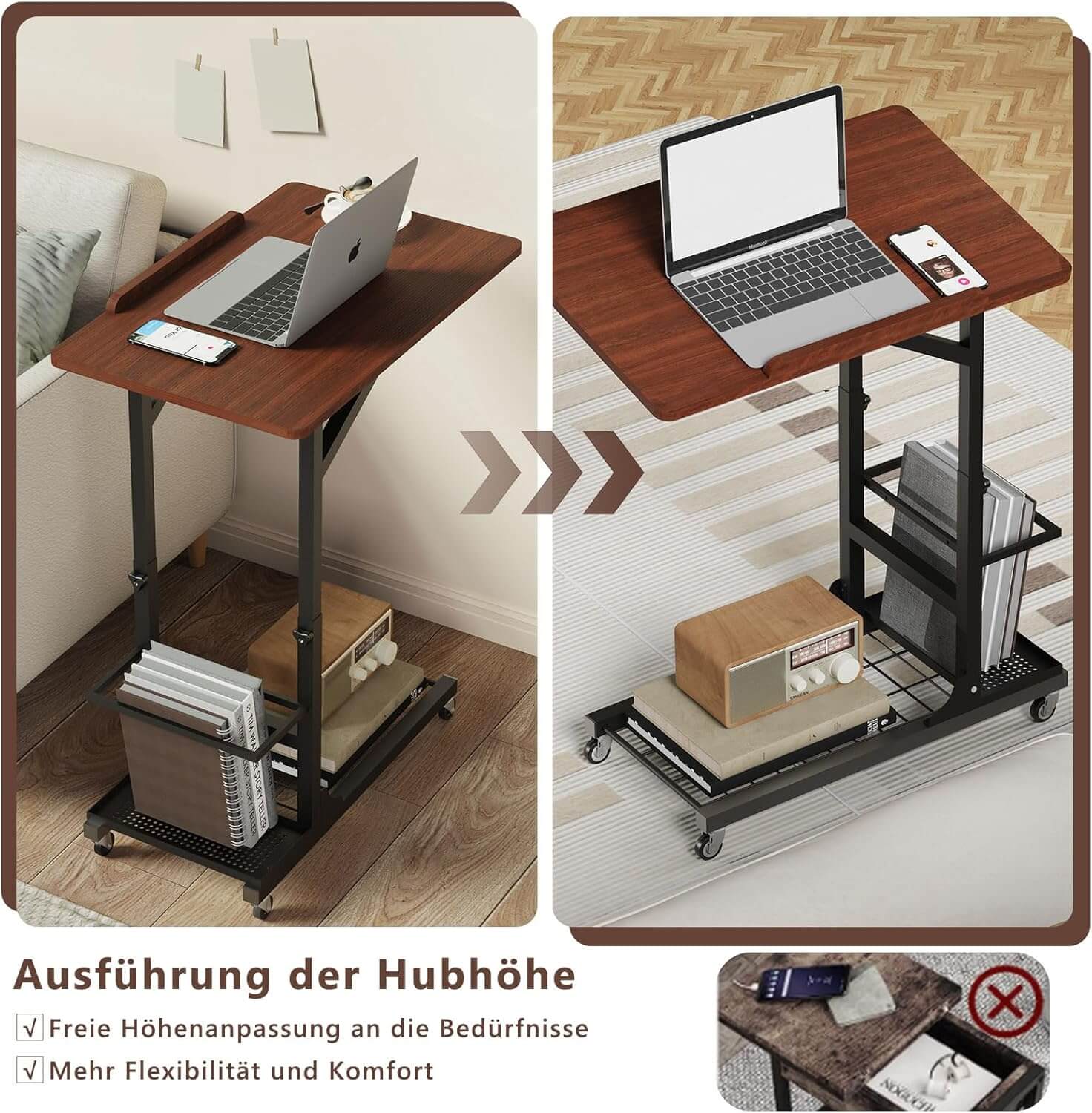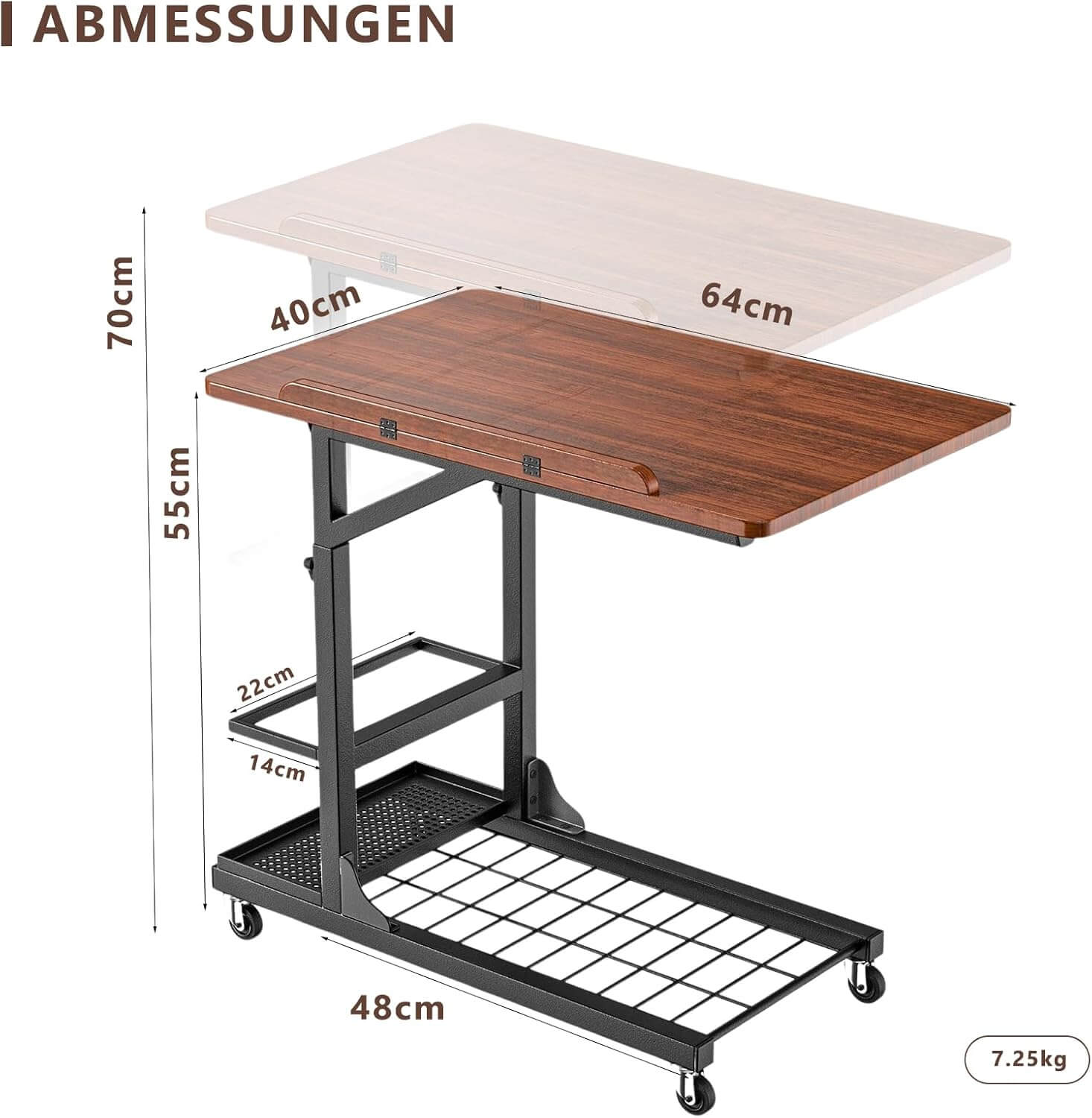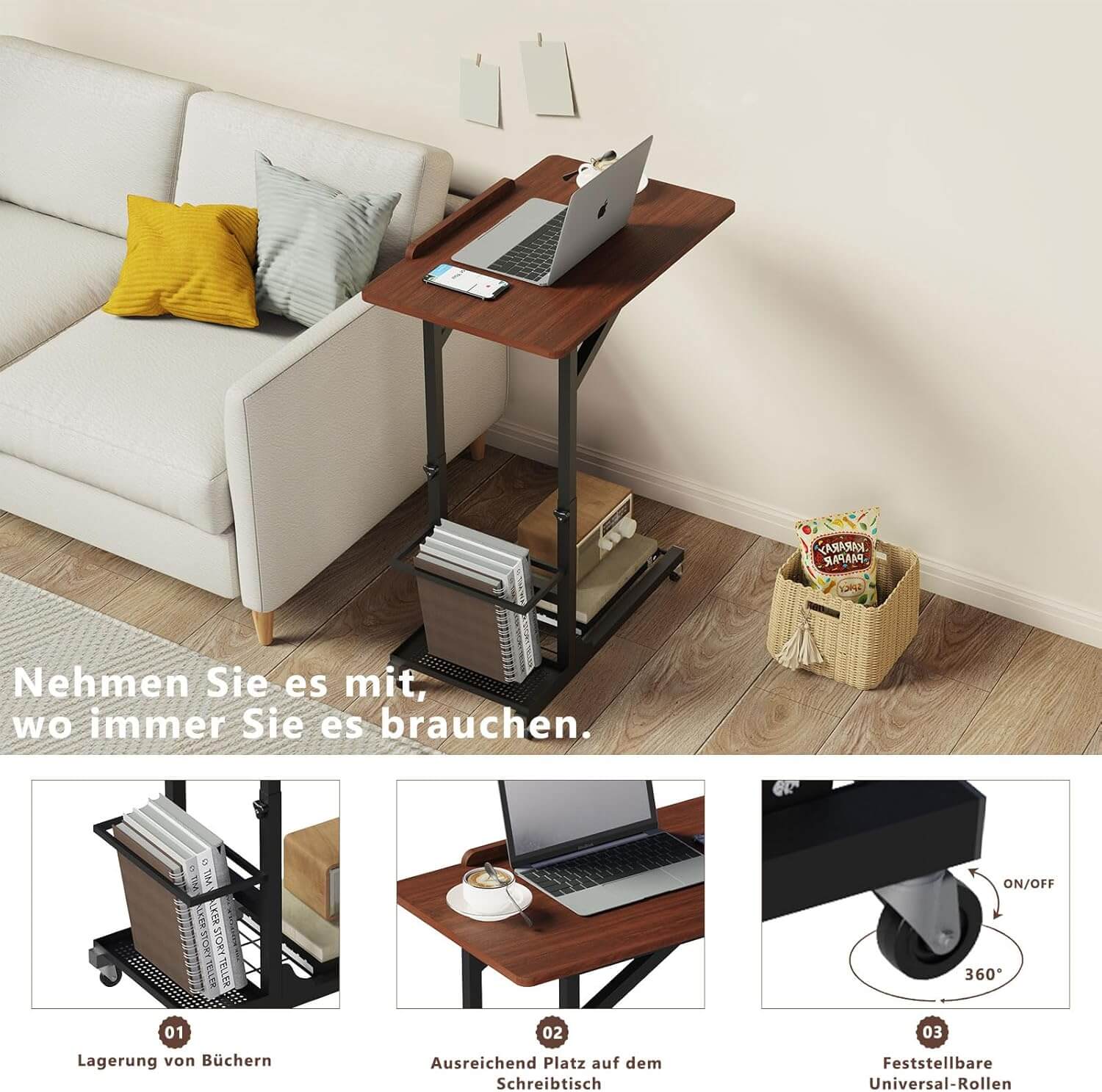 Nastavljiva višina in nagib: delovno ploščo lahko dvigneš ali nagneš po potrebi, kar omogoča udobno tipkanje, branje ali uporabo prenosnika. Rob na sprednji strani preprečuje zdrs naprav in knjig.