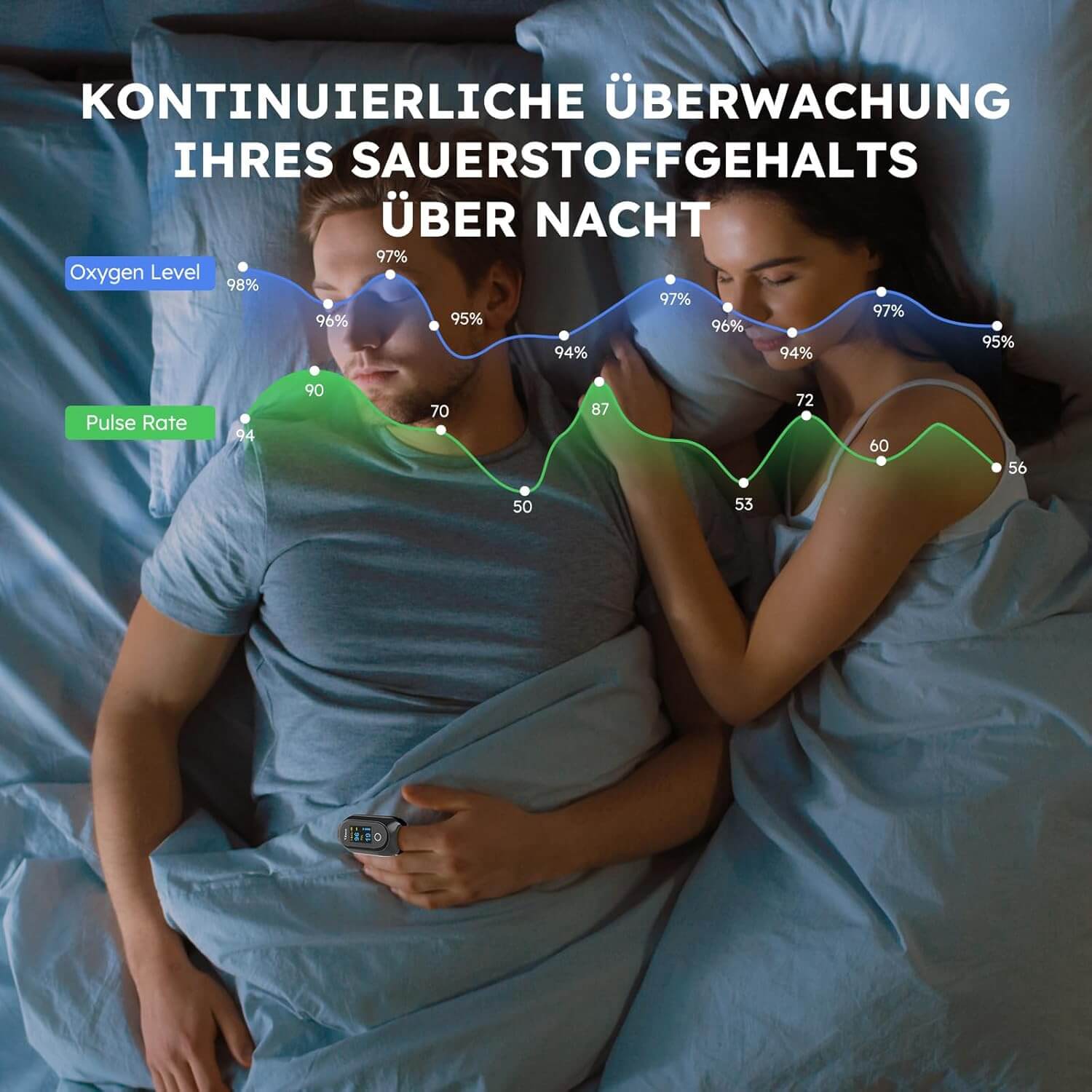 Neprekinjen način delovanja: spremljanje SpO₂ skozi celoten dan ali med spanjem, idealno za analizo nočnega dihanja.