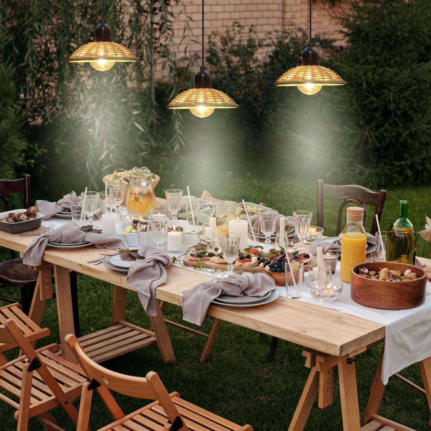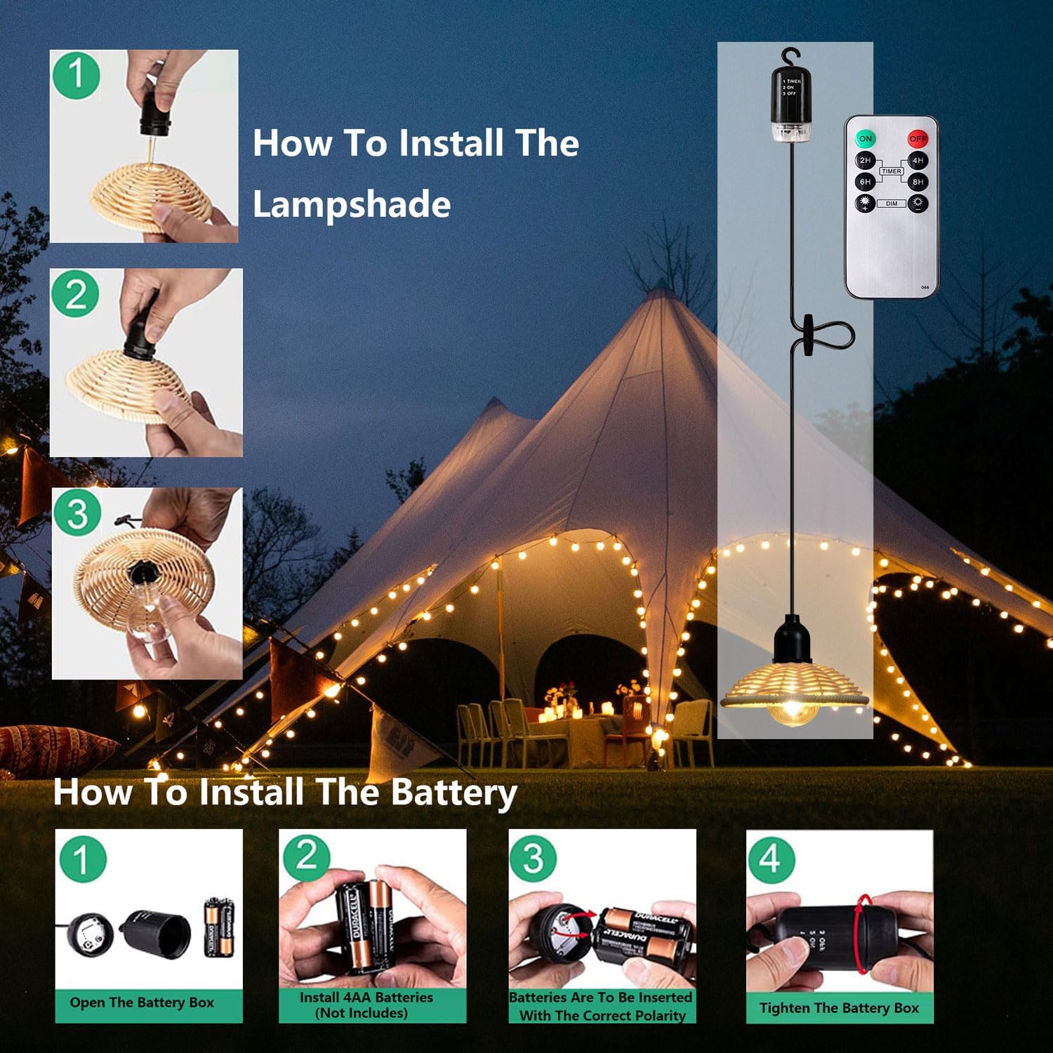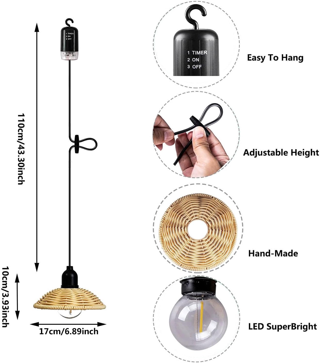 Viseča svetilka brez električnega priklopa omogoča enostavno uporabo kjerkoli. Ročno izdelan senčnik iz ratanapremera 17,5 cm poskrbi za romantično in praktično vzdušje. Vodoodporna konstrukcija IP44 zagotavlja uporabo na prostem v vseh letnih časih.