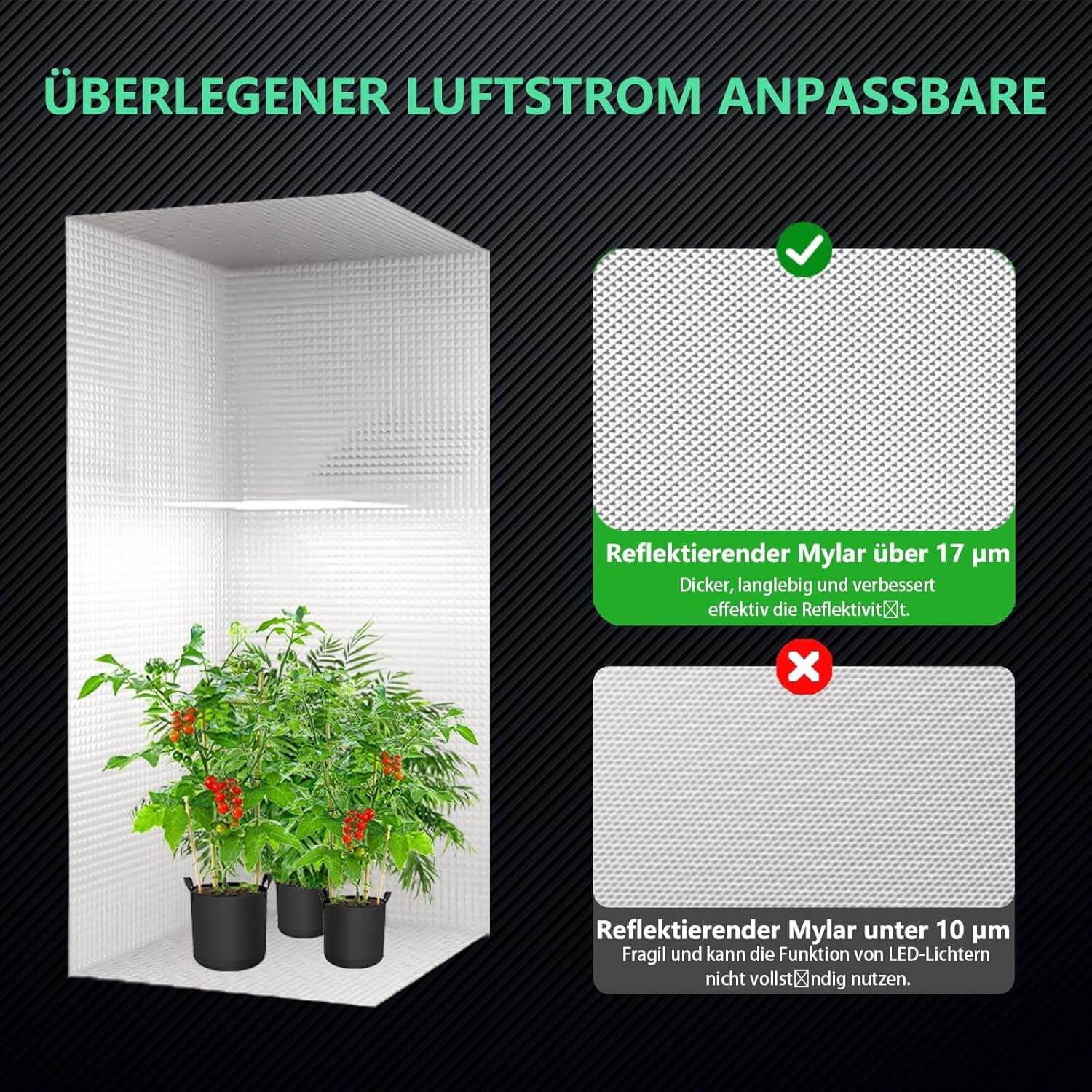 Šotor za rastline velikosti 120 × 60 × 180 cm je zasnovan za stabilno, odsevno in optimalno gojitveno okolje za rastline vseh faz rasti. Čvrst kovinski okvir in visokokakovostna PET notranjost zagotavljata učinkovito razpršitev svetlobe, boljšo temperaturno regulacijo in zanesljivo zaščito pred zunanjimi vplivi.
