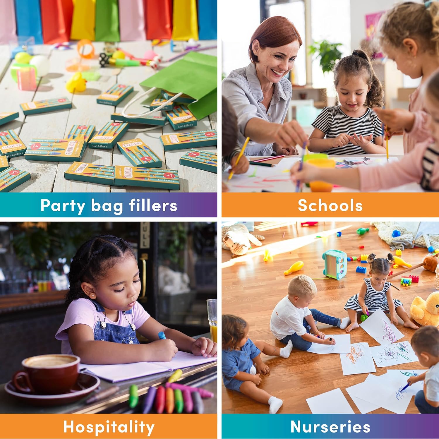Odlična količinska izbira s skupno 1.152 barvicami je popolna za razrede, vrtce in rojstnodnevne zabave. Mini voščenke v štirih osnovnih barvah so idealne za ustvarjanje in igro brez zaslonov. Visokokakovostni material zagotavlja trpežnost in dolgotrajno uporabo.