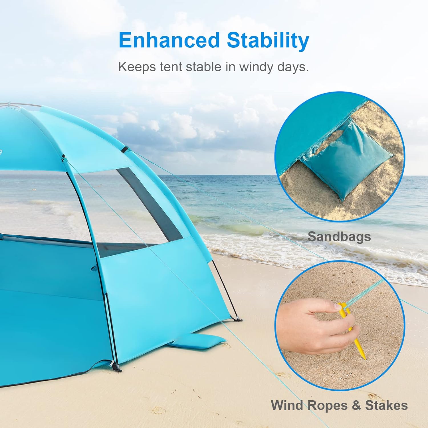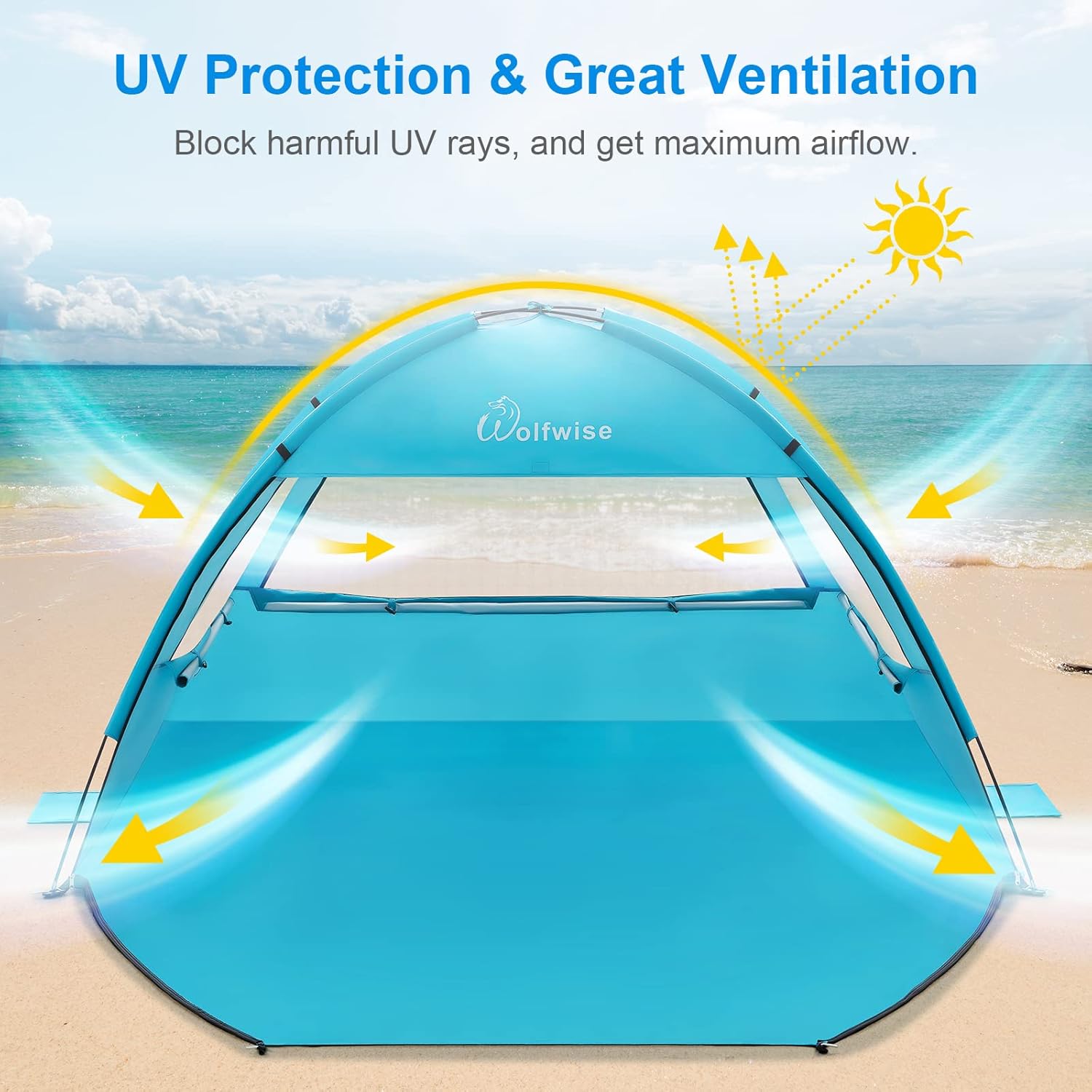 Lahka in zložljiva plažna senčnica Tonor WolfWise nudi učinkovito zaščito pred soncem in vetrom ter zagotavlja prijetno zavetje za družine, pare ali posameznike. Z enostavno postavitvijo, stabilno konstrukcijo in zračno zasnovo je idealna izbira za plažo, park ali kampiranje.