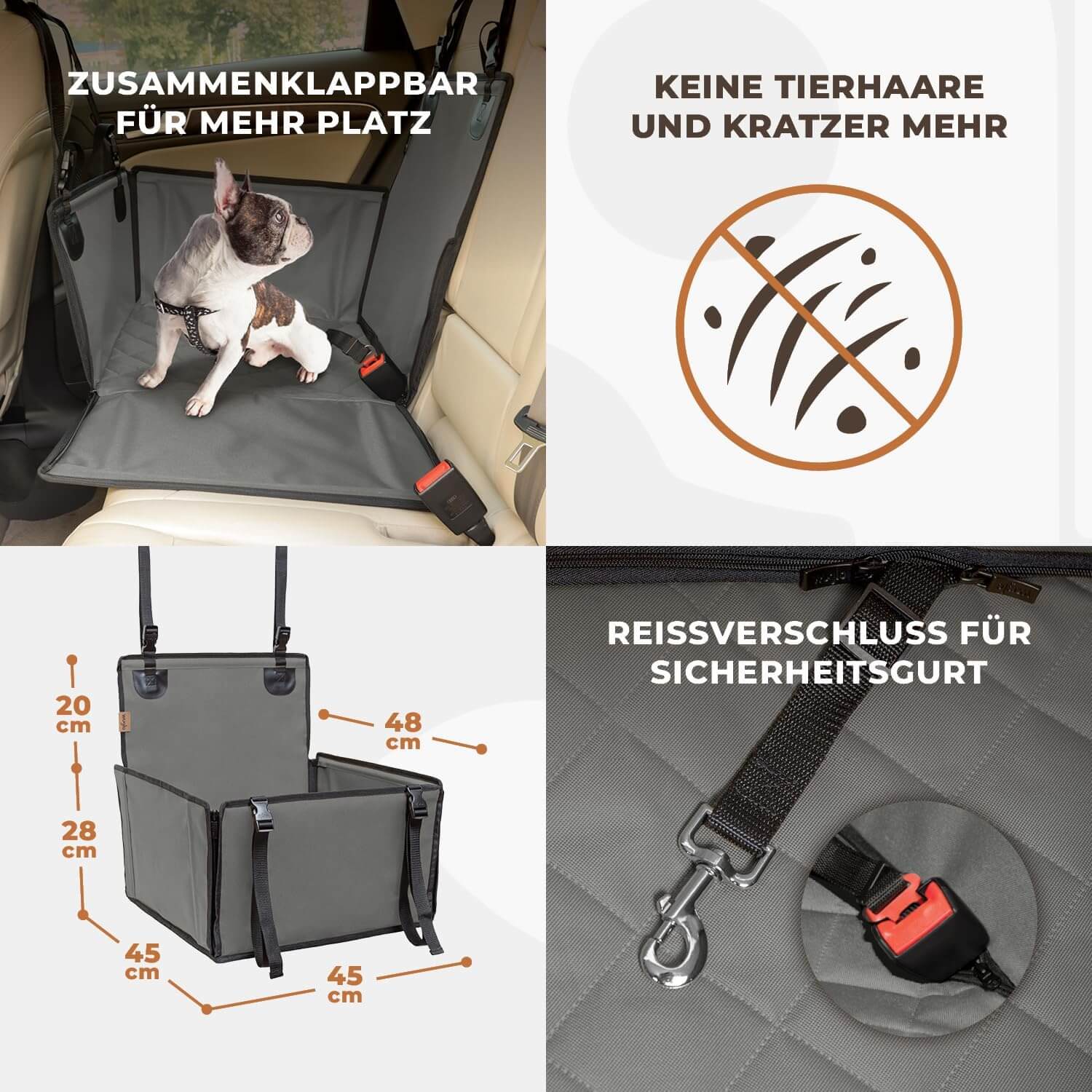 Popolna zaščita avtomobilskih sedežev: Vodoodporna tkanina ščiti zadnji sedež pred razlitimi tekočinami, praskami, dlakami in umazanijo.