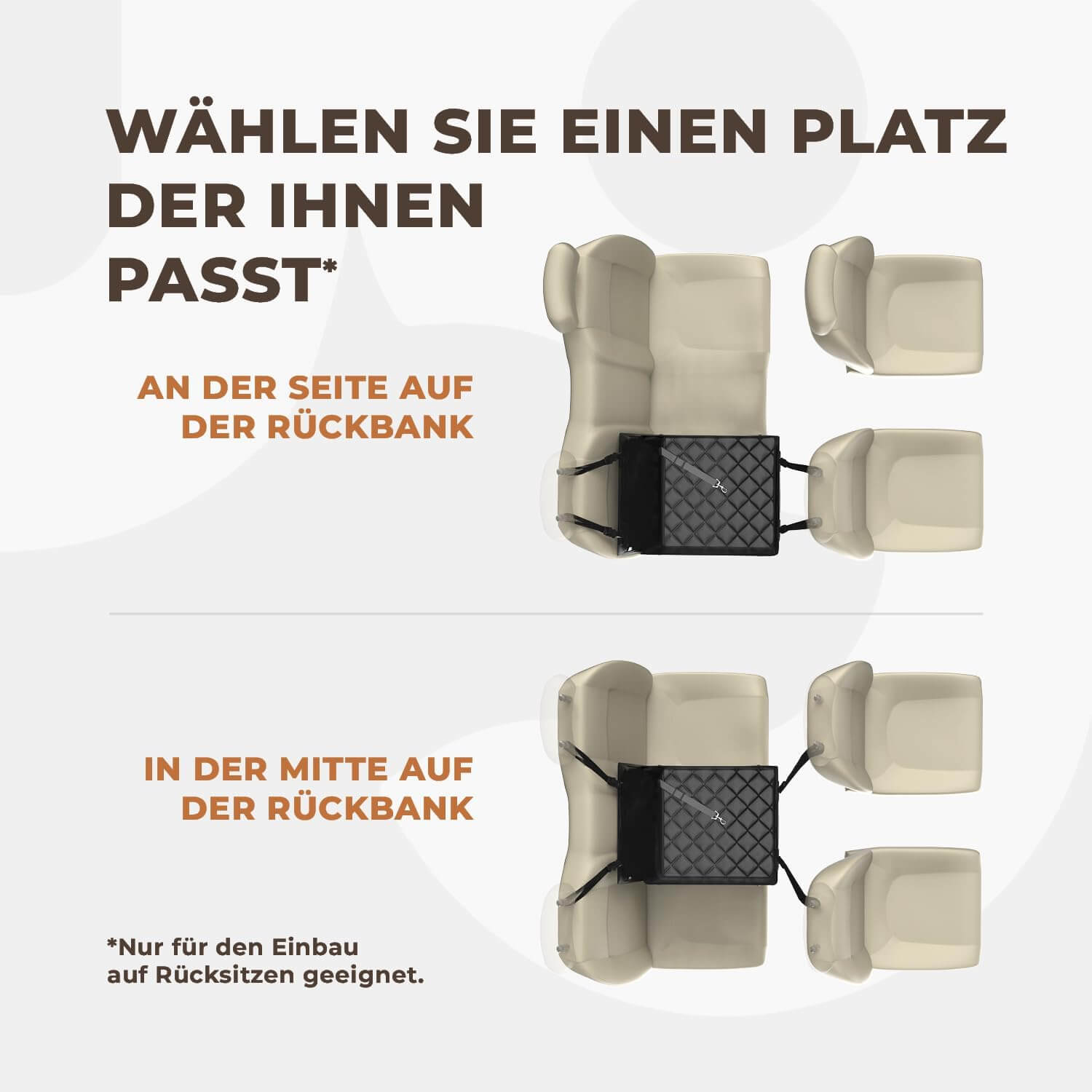 Enostavna uporaba: Montaža traja le nekaj trenutkov – sedež se enostavno pritrdi na zadnji sedež, ojačitvene palice pa se po potrebi hitro odstranijo.