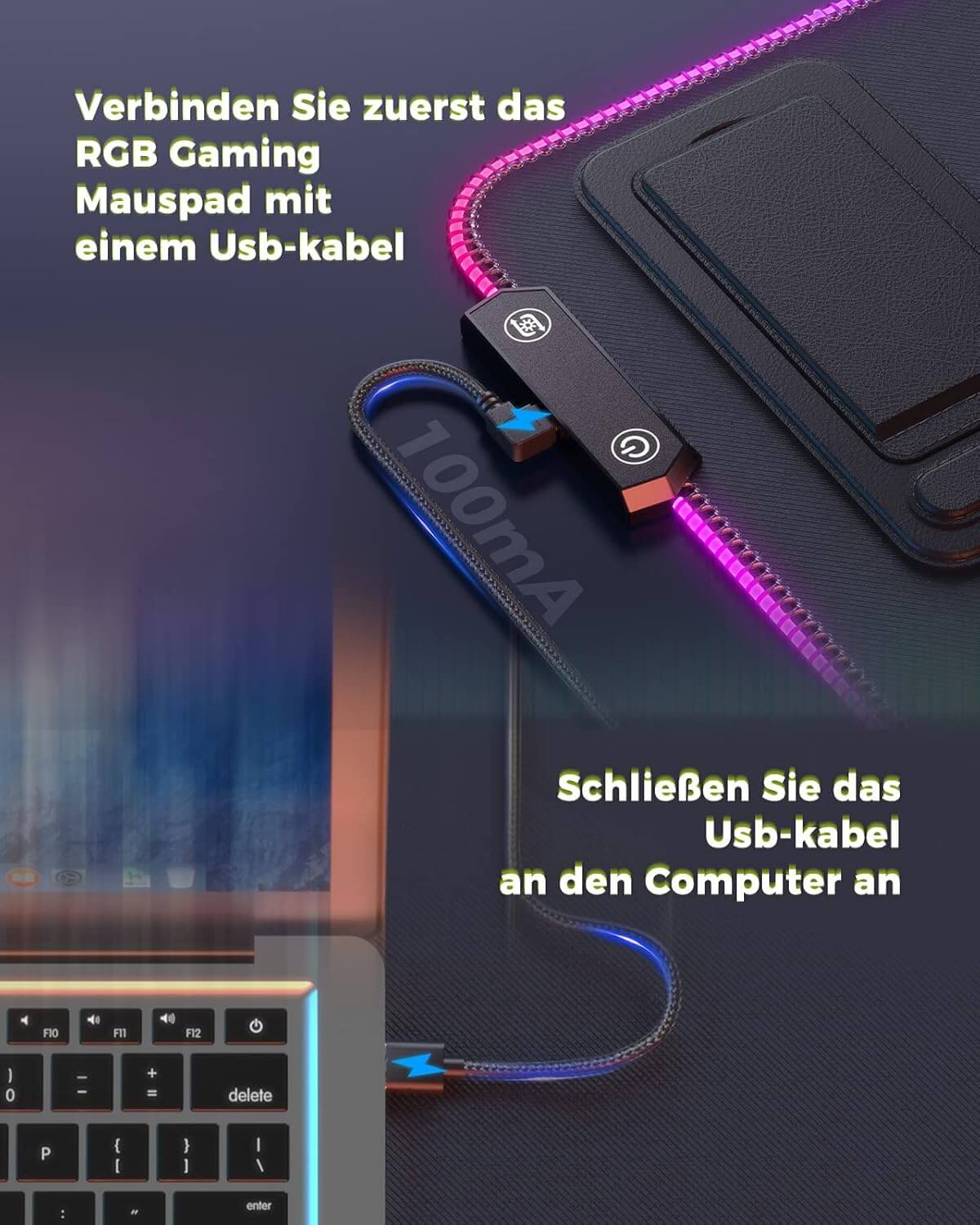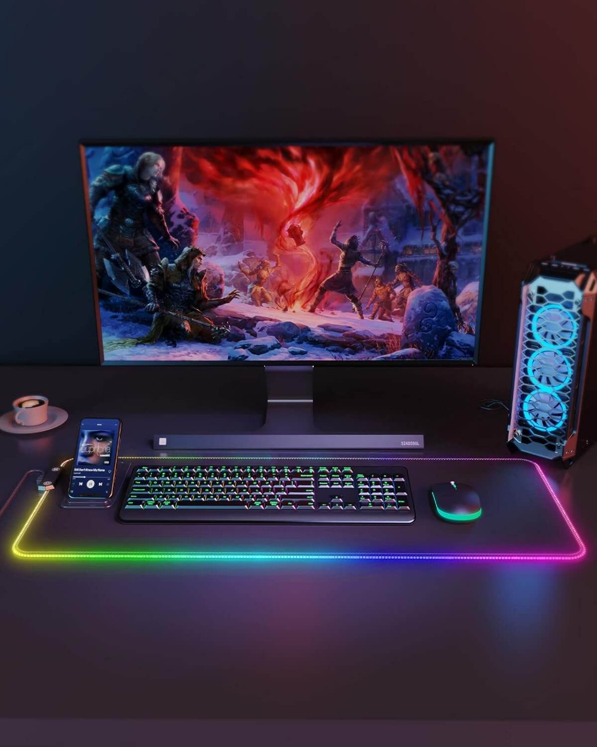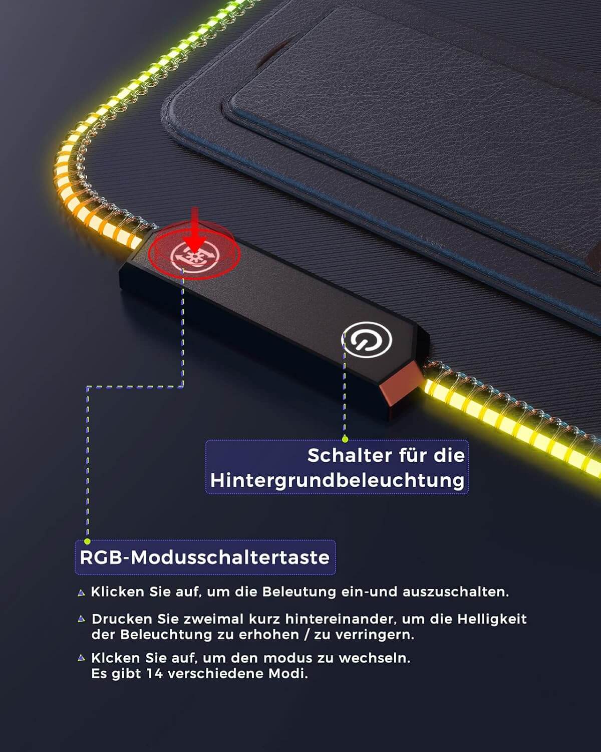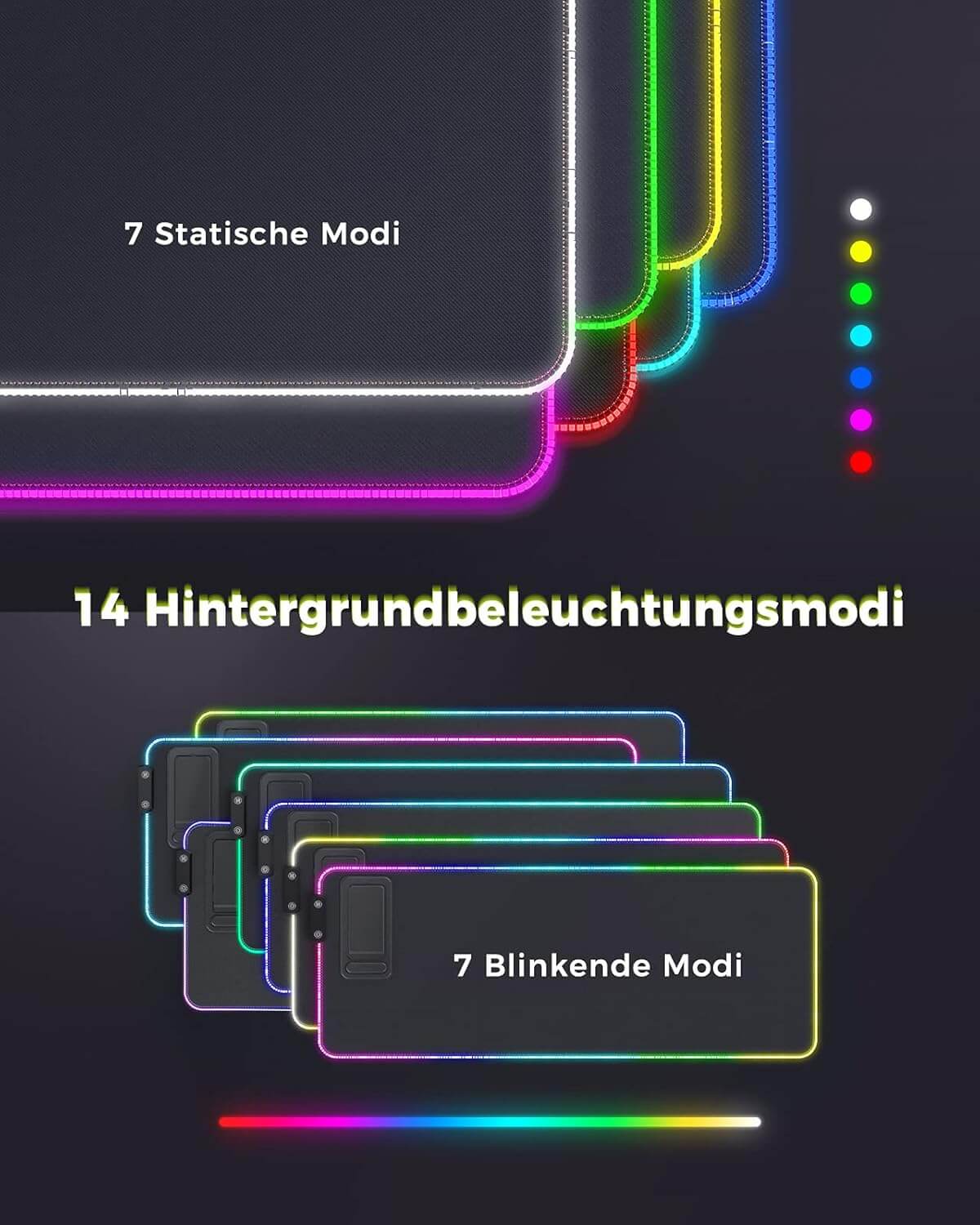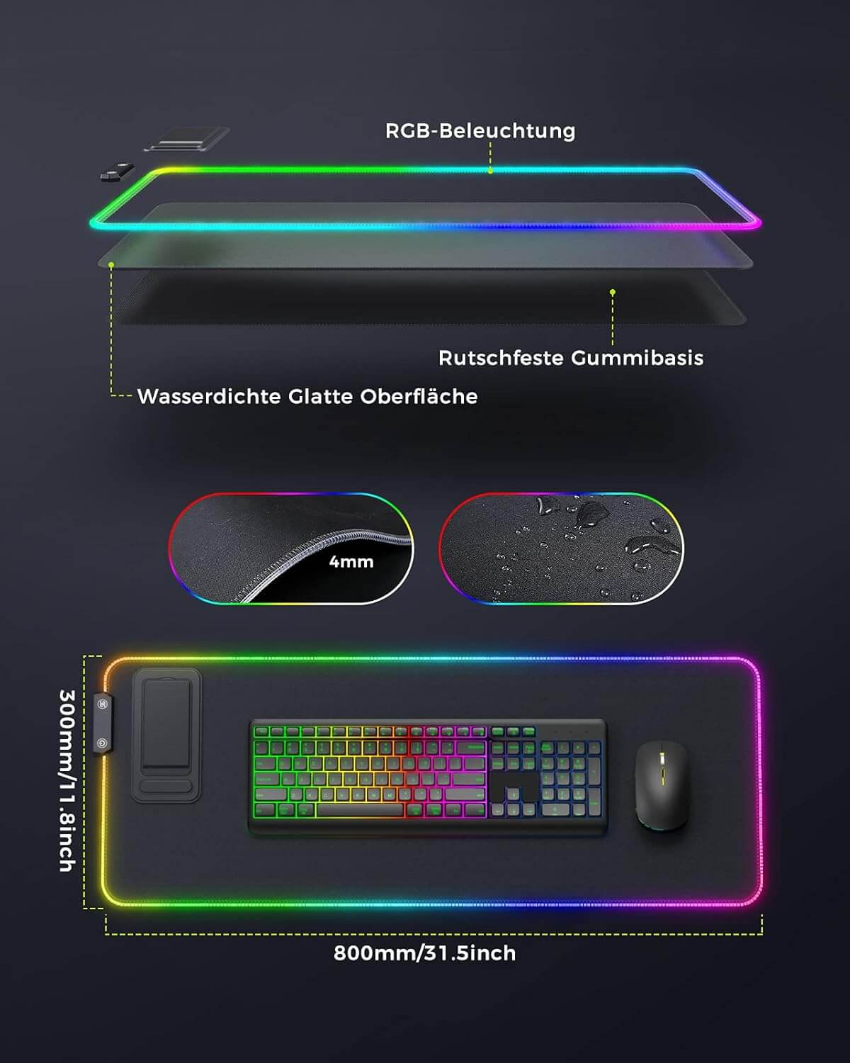 XXL LED podloga za miško z 14 načini osvetlitve, nedrsečo podlago in nosilcem za naprave, idealna za igralce in vsakodnevno uporabo.
