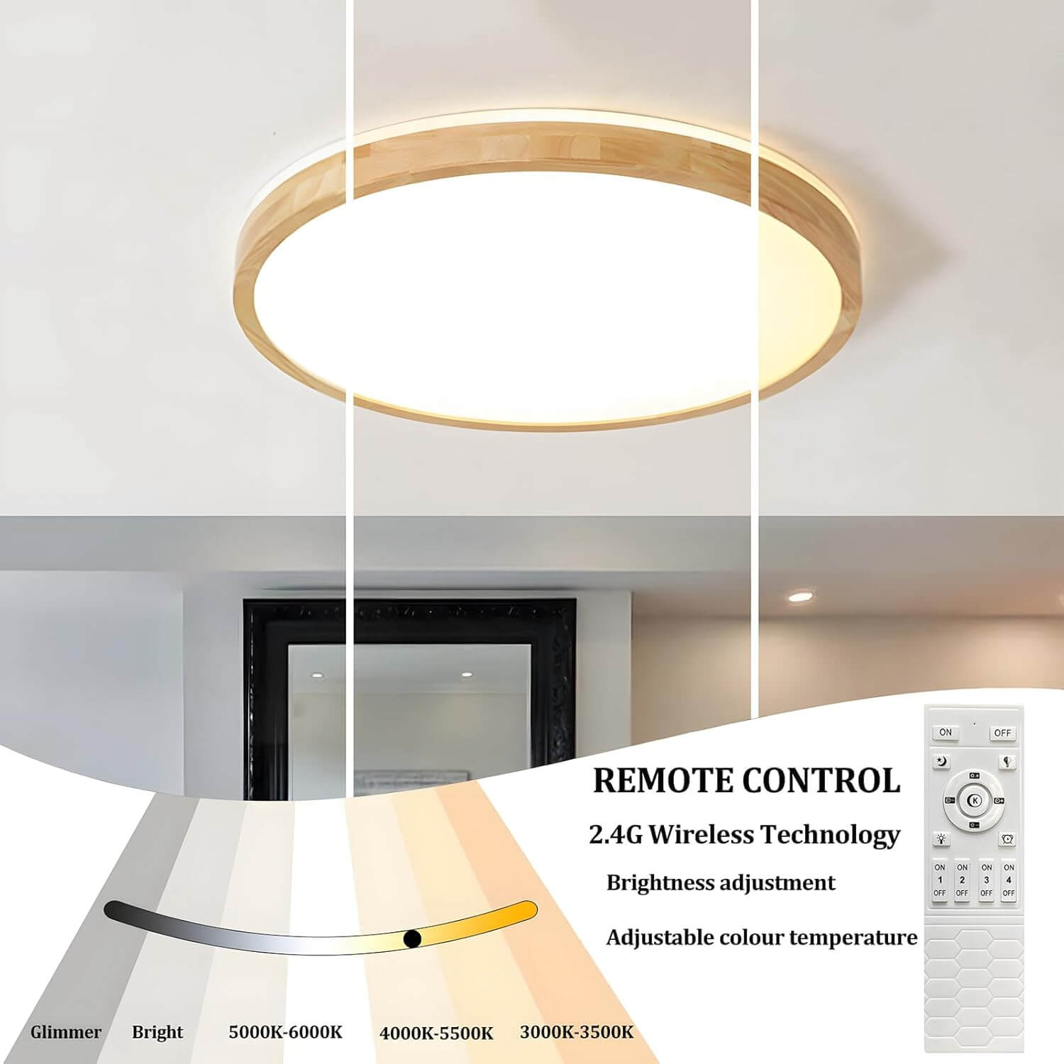 Elegantna stropna LED svetilka iz naravnega lesa ponuja popolno 360° ambientalno osvetlitev ter združuje sodoben dizajn z naravnimi materiali. Z daljinskim upravljalnikom lahko prilagajaš barvno temperaturo in svetlost.