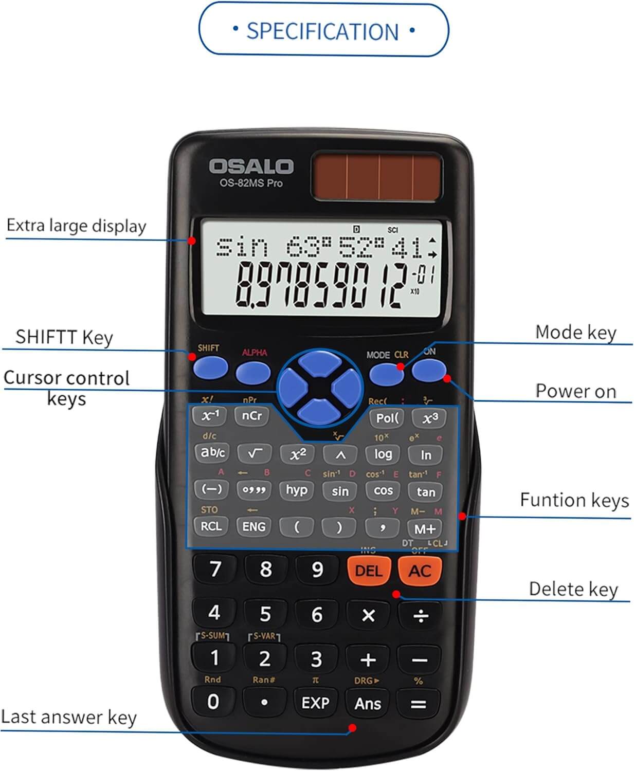 OSALO OS 82MS Pro je idealen spremljevalec za dijake, študente in profesionalce, ki potrebujejo natančen, zanesljiv in vsestranski znanstveni kalkulator za vsakodnevno delo in študij.
